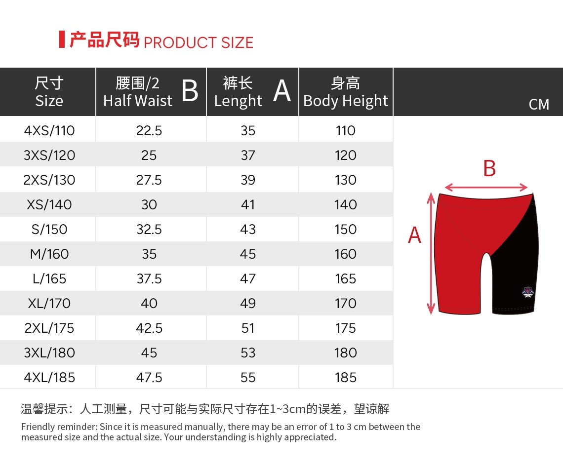 Size 4XS/110 or 3XS/120 or 2XS/130 or XS/140 or S/150 or M/160 or L/165 or XL/170 or 2XL/175 or 3XL/180 or 4XL/185