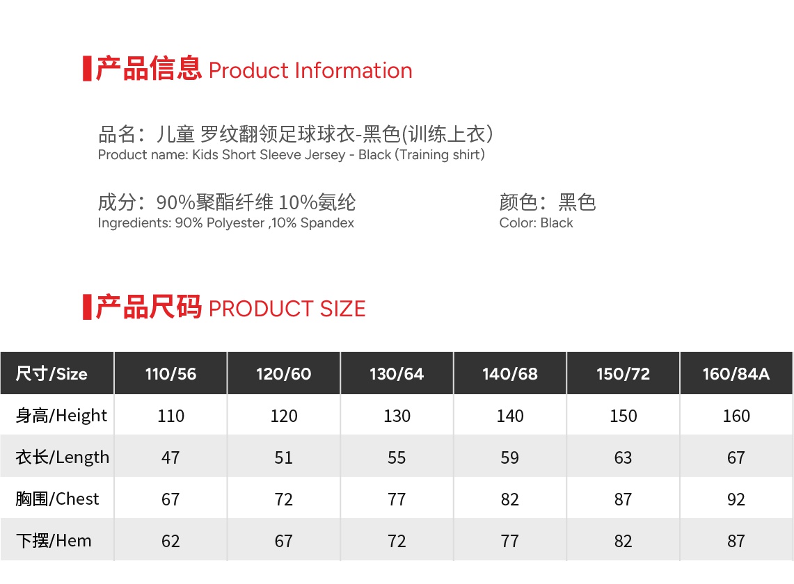 Kids Short Sleeve Jersey - Black (Training shirt)