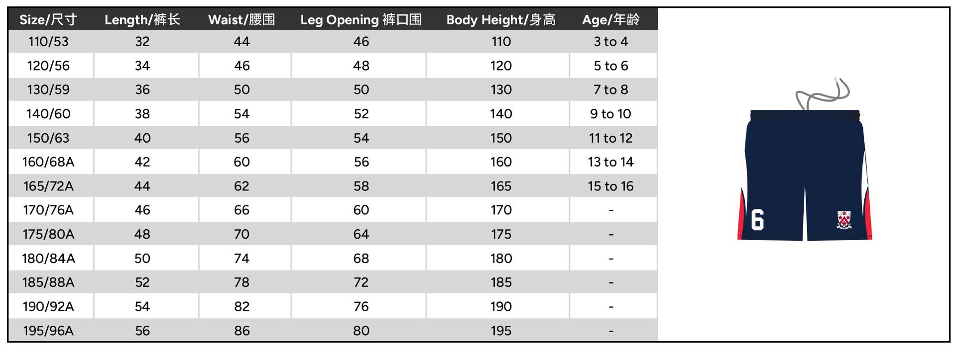 尺码 110 or 120 or 130 or 140 or 150 or 160 or 165 or 170 or 175 or 180 or 185 or 190 or 195